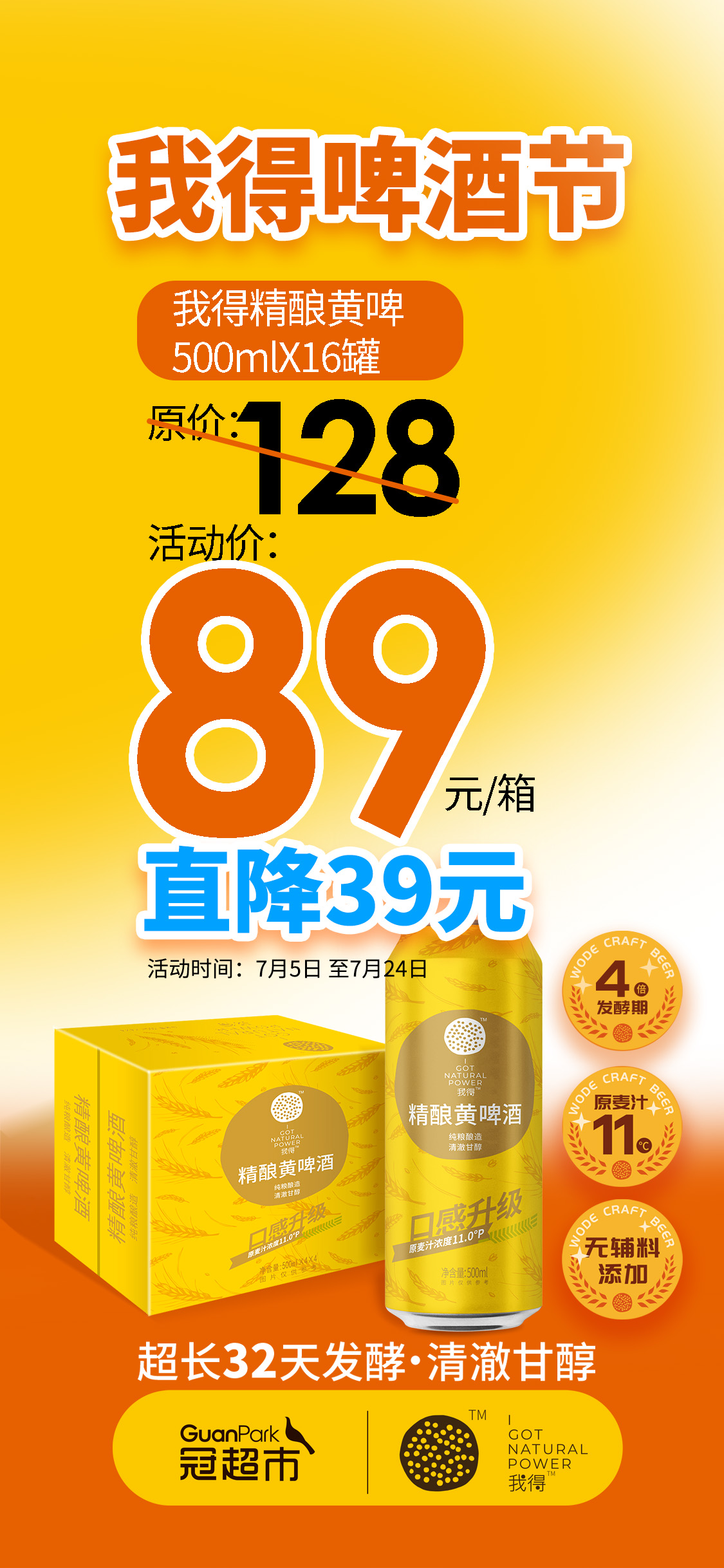 原价128元/箱的我得精酿黄啤