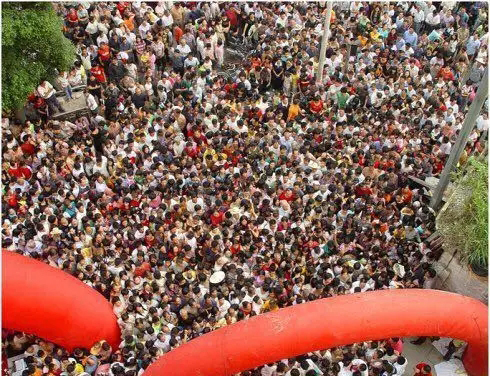 人群浩浩荡荡地堵了几条街