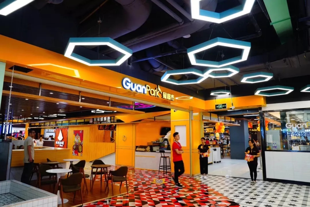 其实,在林永强的卖场里,昂头的“黄冠雉”随处可见,比如大到卖场墙壁、货架,小至堂食区的面巾纸盒、薄荷糖包装袋等,这些是冠超市自有品牌GuanPark的衍生品。